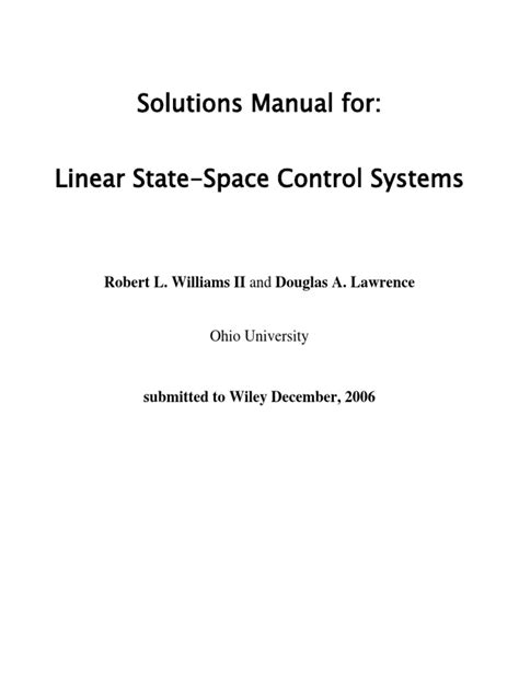Download LINEAR STATE SPACE CONTROL SYSTEM SOLUTION MANUAL Epub ManyBooks